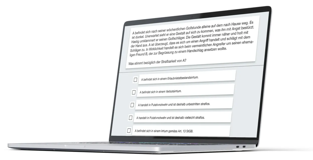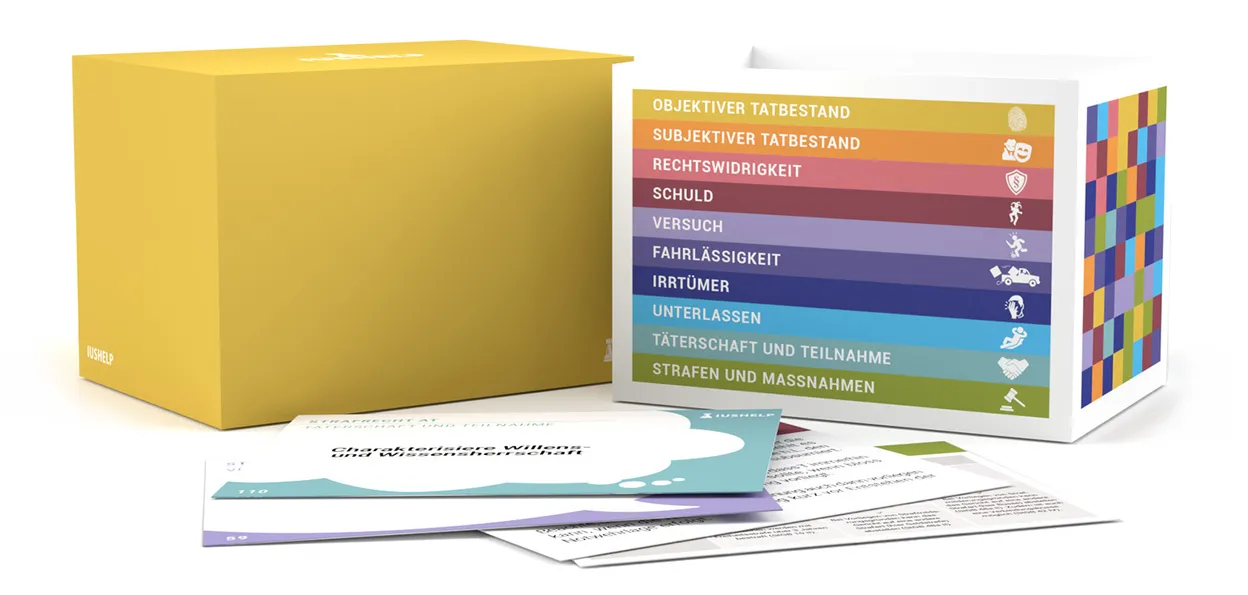 Definitionen sind aus dem Fach Strafrecht I nicht wegzudenken, reichen aber für das Bestehen einer Prüfung nicht aus. Ein wichtiger Erfolgsfaktor ist das effiziente Prüfungswording. Dieses erlernst du mit unseren Satzbausteinen, welche einen integralen Bestandteil unseres Lernkartensets bilden. In unserem Shop kannst du das komplette Set für CHF 105.– erwerben.