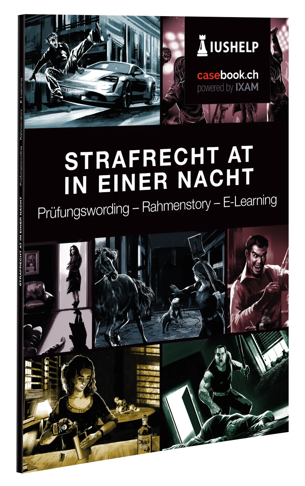 Unser Casebook zum Fach Strafrecht I, das der Vorbereitung auf reine AT-Prüfungen (Prüfungen über den Allgemeinen Teil des Strafrechts) dient, besteht aus drei Elementen: Wir zeigen unseren Kunden ein effizientes Prüfungswording auf, besprechen unsere eigenen Fälle mit einer didaktisch wertvollen (und gleichzeitig unterhaltsamen) Rahmenstory und geben dir mit unserem Lerntool die Möglichkeit, das Gelernte selbständig zu überprüfen.