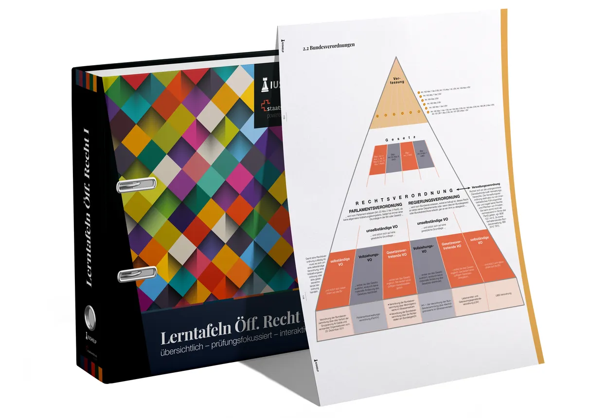 Nach einer über zehnjährigen Entwicklungszeit ist es uns gelungen, die wichtigsten Lerninhalte des Fachs Öffentliches Recht I (UZH) auf grafisch ansprechende Weise abzubilden und die Zusammenhänge darzustellen. Der Lernordner mit über 100 Lerntafeln wird exklusiv im Rahmen unseres Jahreskurses abgegeben.